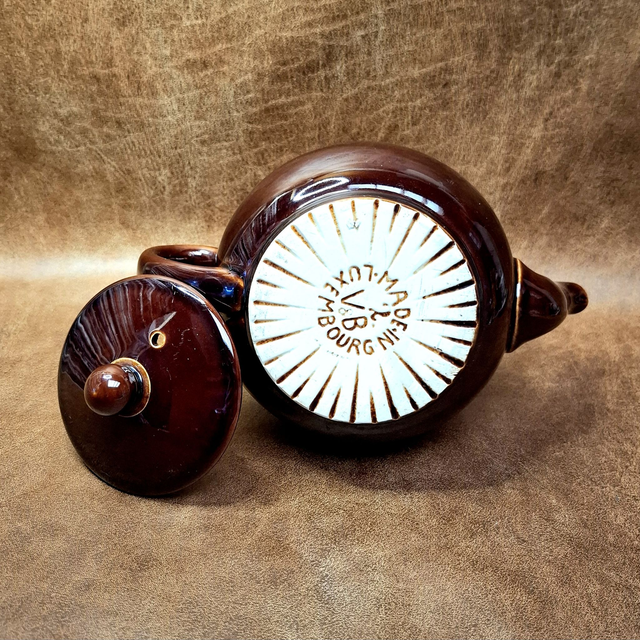 This elegant teapot by Villeroy & Boch, made in Luxembourg, reflects the timeless simplicity of mid-20th-century design. The deep chestnut glaze and soft rounded shapes give it a warm, classic appearance. Designed for everyday use, it feels comfortable in the hand and pours smoothly. A characterful and well-crafted ceramic piece where simplicity and functionality meet. In very good condition.